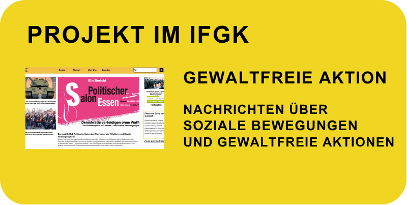 gewaltfreie aktion ist ein Online-Nachrichten- und Meinungsportal, das über soziale Bewegungen und gewaltfreie Aktionen berichtet und sie kommentiert. Angeregt durch das seit 2009 bestehende US-amerikanische Newsportal ‚Waging Nonviolence – People